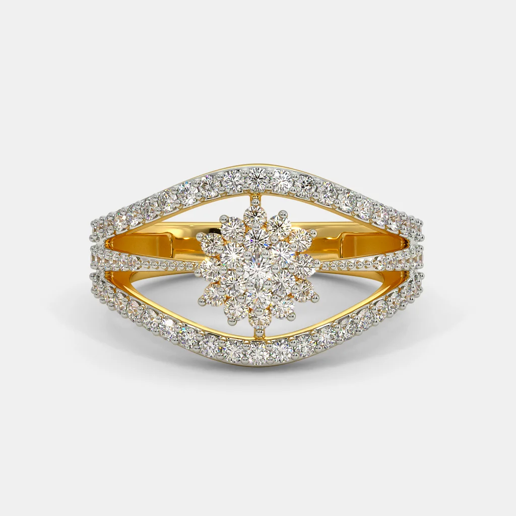 The modern, swirling design symbolizes a harmonious balance between classic beauty and contemporary allure, making it perfect for any occasion. Whether worn as an everyday statement piece or for special celebrations, this ring effortlessly elevates any look with its captivating sparkle and refined elegance.