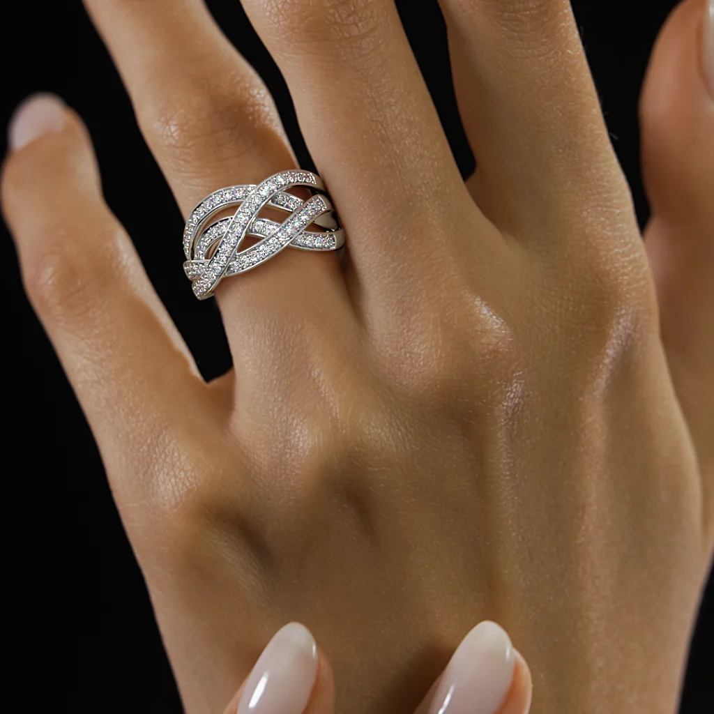 With its flowing silhouette and radiant pavé diamonds, the Radiant Weave Diamond Ring is a masterclass in elegance and design. It offers a luxurious sparkle that turns everyday moments into extraordinary ones—truly a piece to treasure forever.