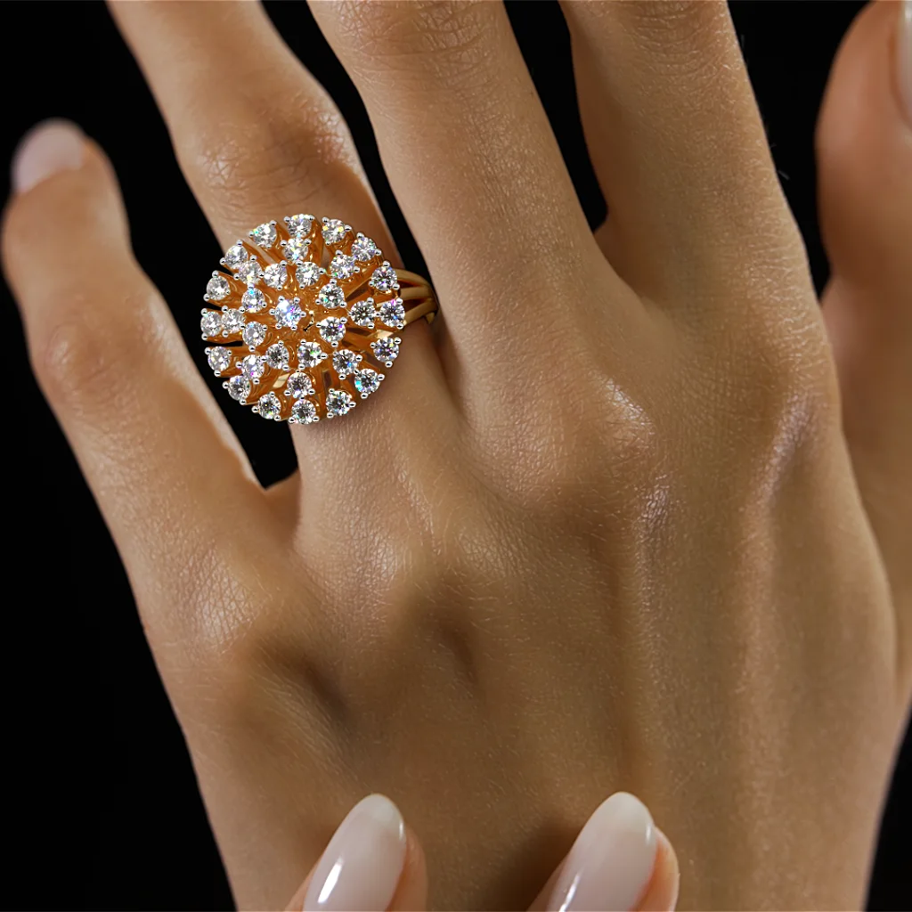 Ideal for those who appreciate bold beauty and refined craftsmanship, the Sunburst Diamond Ring is perfect for special occasions or as an unforgettable gift for a loved one.
